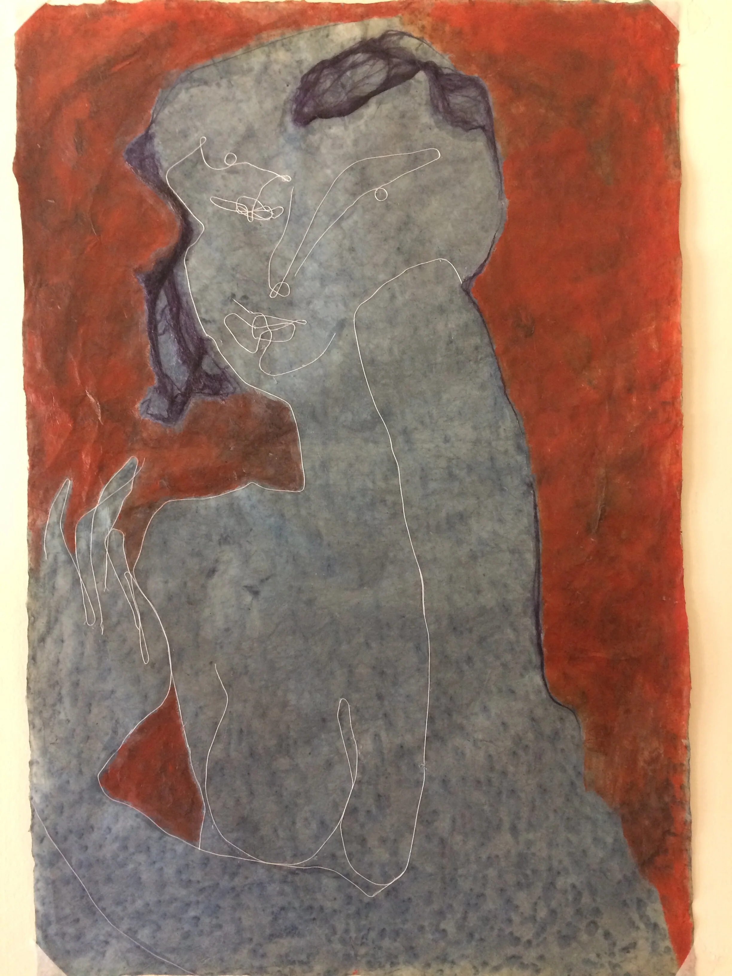 Night visitor / 2021 / Thread and tulle on canvas 145 x 90 cm