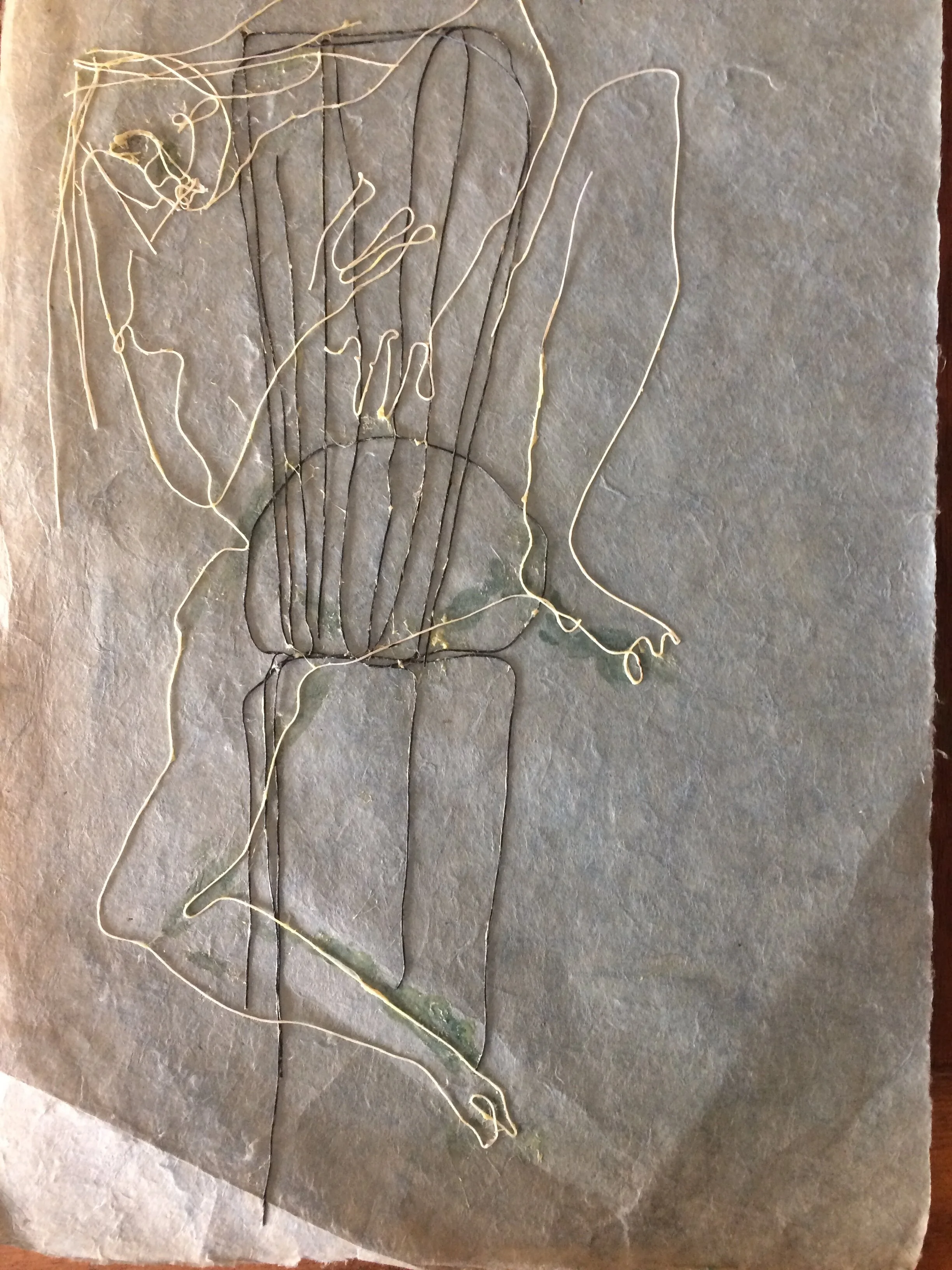 On that leaf / 2019 / Thread and tulle on canvas 160 x 110 cm